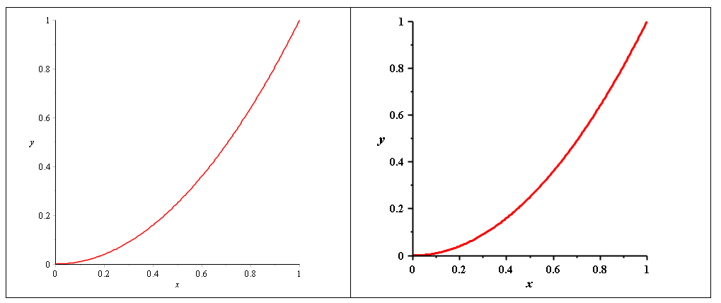 B := plot(x^2, x = 0 .. 1, thickness = 3, color = red, axis = [thickness = 2, tickmarks = [thickness = 2]], axesfont = [times, bold, 13], labelfont = [times, bold, 14], labels = [x, y]):