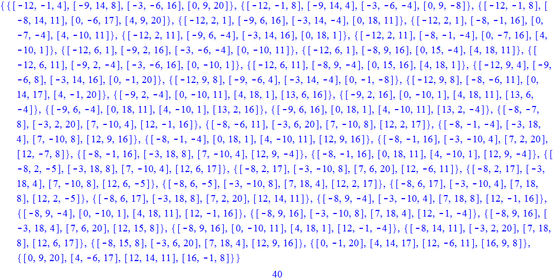 if (x-2)^2+(y-4)^2+(z-6)^2 = 225 then n := n+1; S[n] := [x, y, z] fi;