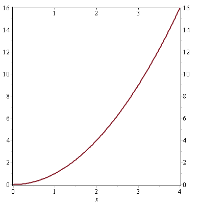A := plots[dualaxisplot](x^2, x^2, x = 0 .. 4):