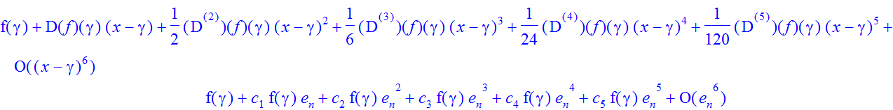 subs([x-gamma=e[n], seq((D@@k)(f)(gamma)=k!*c[k]*f(gamma), k=1..5)], %);