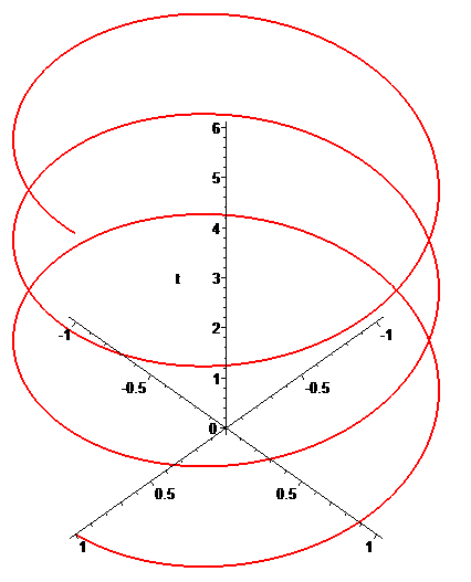 plots[spacecurve]([cos(2*Pi*f*t), sin(2*Pi*f*t), t], t=0..6, color=red, thickness=2, axes=normal, numpoints=1000, labels=[``,``, t]);