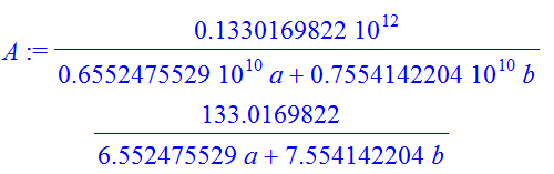 A:=1.330169822*10^11/(6.552475529*10^9*a+7.554142204*10^9*b);