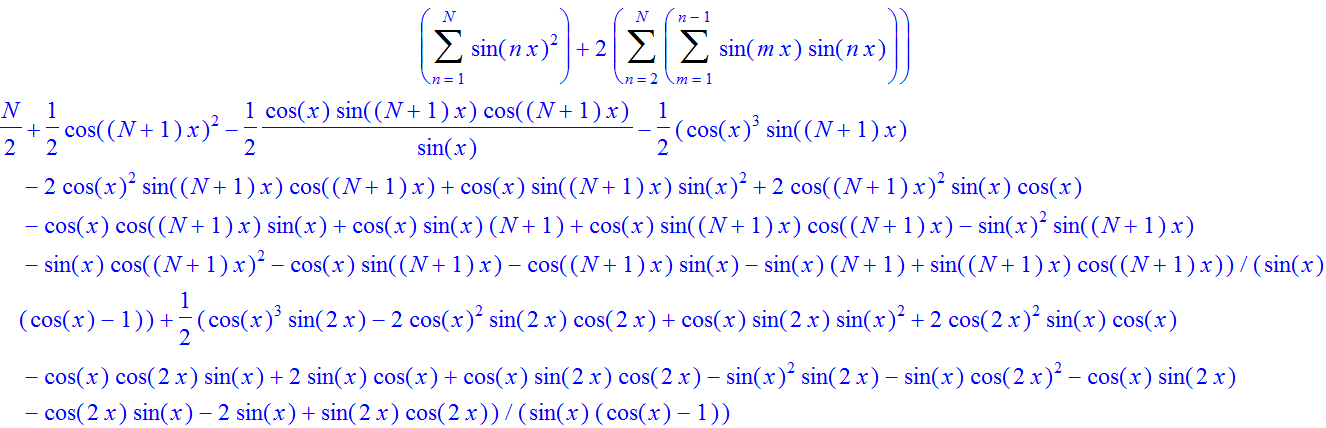 Remark.  @Mac Dude  your term  sum(sum(E[m]*E[n],m=1..n-1),n=1..N)  is incorrect because should be  m<>n
