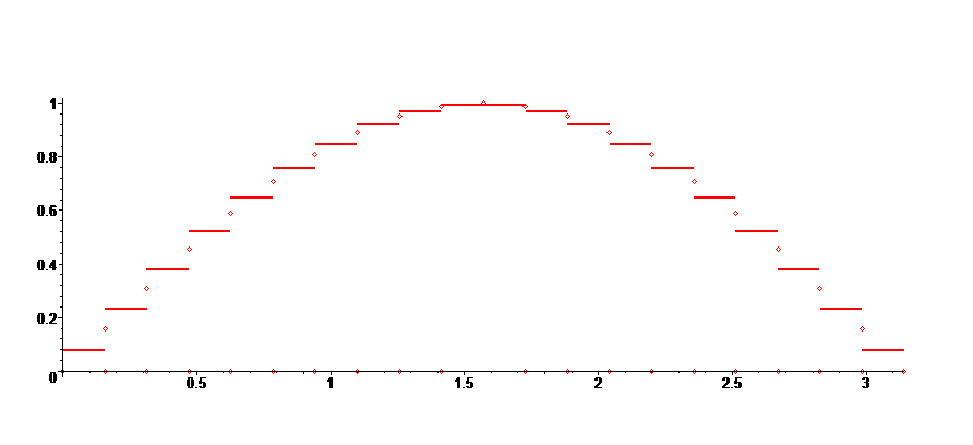 L:=[seq([Pi/n*k,sin(Pi/n*k)], k=0..n)]: