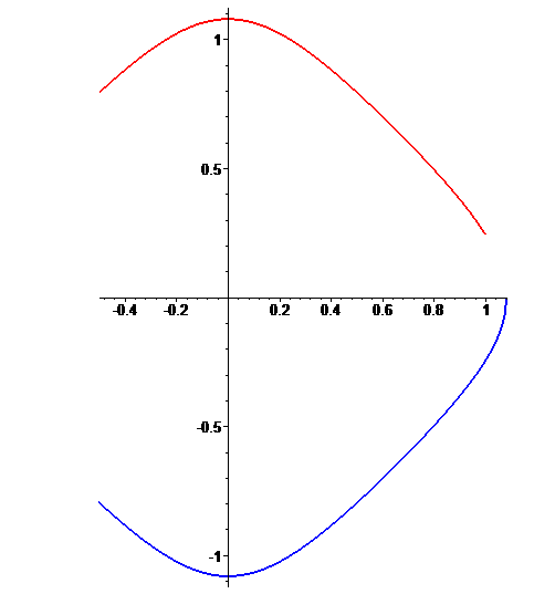 plots[display](plot(Y_up, -0.5 .. 1, color=red, thickness=2, scaling=constrained), plot(Y_low, -0.5 .. 27/25, color=blue, thickness=2, scaling=constrained));