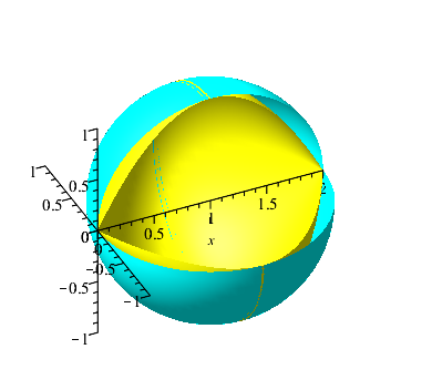 B := plot3d([2*cos(alpha)^2, 2*cos(alpha)*sin(alpha)*cos(phi), 2*cos(alpha)*sin(alpha)*sin(phi)], alpha = 0 .. (1/2)*Pi, phi = -Pi .. (1/2)*Pi, color = cyan):