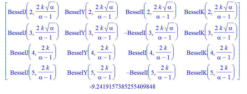A:=Matrix(4,(i,j)->`if`(i=1 or i=2,cat(Bessel,L[j])(i+1,2*k*sqrt(alpha)/(alpha-1)),cat(Bessel,L[j])(i+1,2*k/(alpha-1)))):