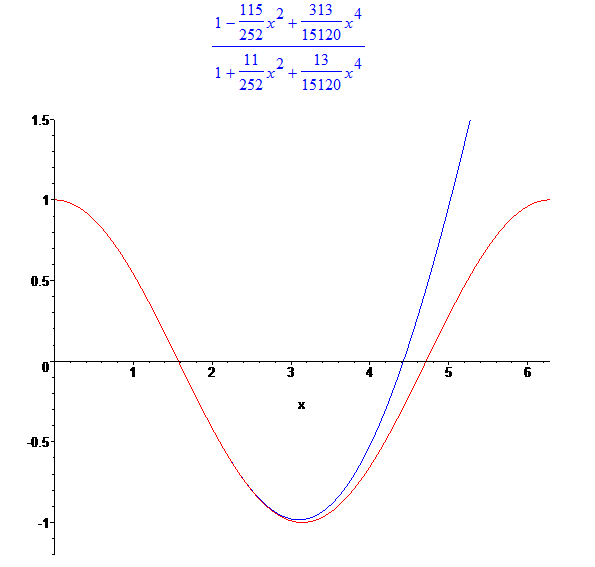 pade(cos(x), x, [4,4]);