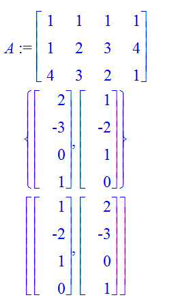 A:=<1,1,1,1; 1,2,3,4; 4,3,2,1>;