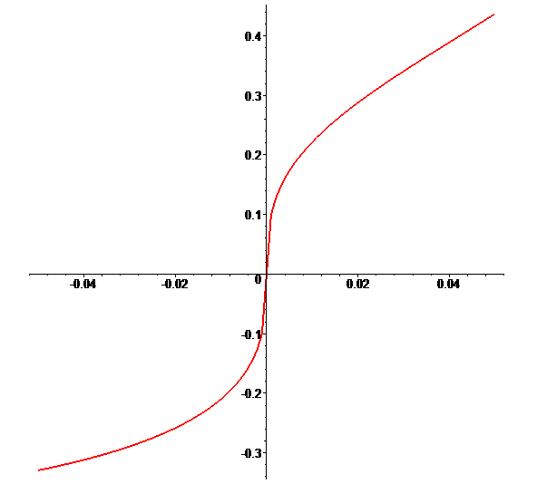 You do not need a graphics command. In the range  t=-0.05..0.05  the equation for each value  t  has a unique solution for  , so  fsolve  command can be used: