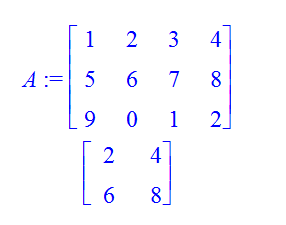 A := Matrix(3,4, [[1,2,3,4],[5,6,7,8],[9,0,1,2]]);