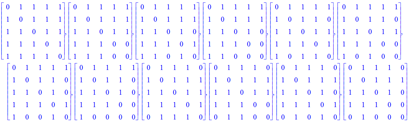 Example (the first 12 matrices of  2^10  the all ones for  n=5 ):