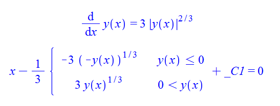 de := diff(y(x), x) = 3*abs(y(x))^(2/3);