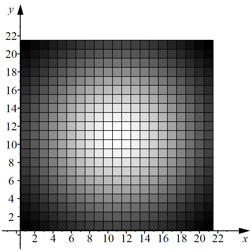 points := [seq([seq(exp(-(x^2+y^2)*(1/100)), x = -10 .. 10.0)], y = -10 .. 10.0)]: