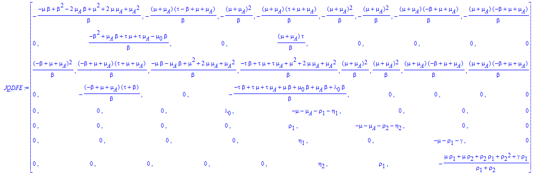 JQDFE := simplify(eval(J, [S = Lambda/(beta-mu[A]), T = 0, H = Lambda*(beta/(mu+mu[A])-1)/(beta-mu[A]), C = 0, C1 = 0, C2 = 0, C1M = 0, C2M = 0]));