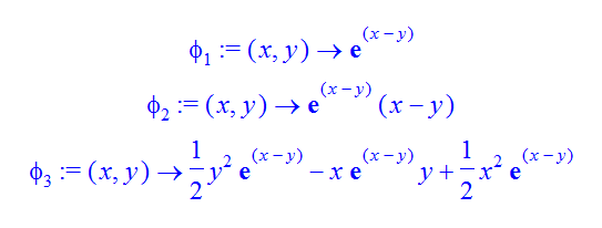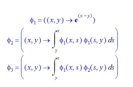 phi[jj+1]:=unapply(int(phi[1](x,s)*phi[jj](s,y),s=y..x), x,y);
