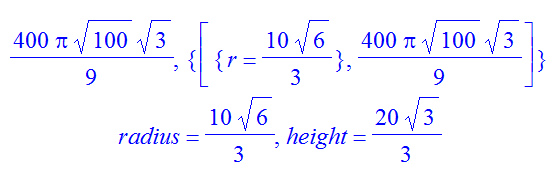 radius=r, height=h(r);