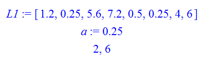 L:=[1.2, 0.25, 5.6, 7.2, 0.5, -0.25, -4, 6]: