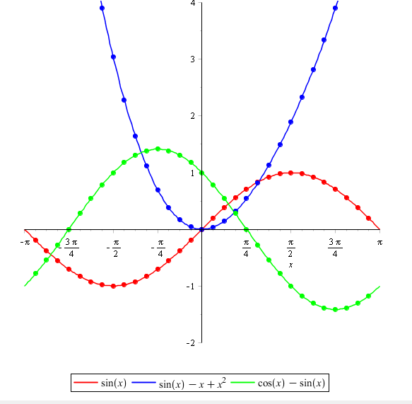 B := plot(P, x = -Pi .. Pi, color = [red, blue, green], style = point, symbol = solidcircle, symbolsize = 10):