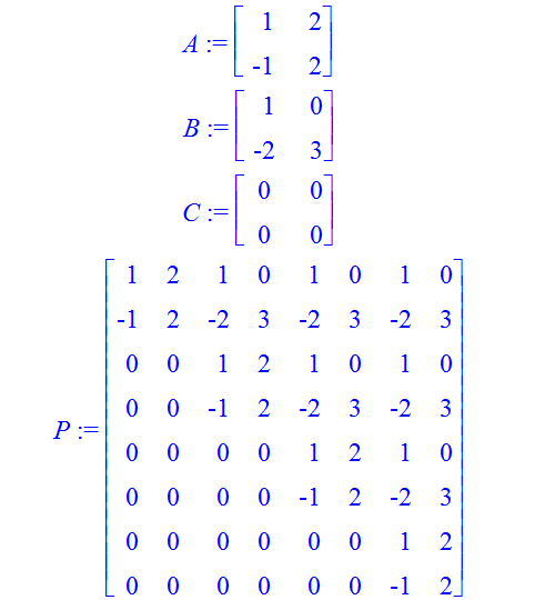P:=Matrix([seq([C$k,A,B$M-1-k],k=0..M-1)]);