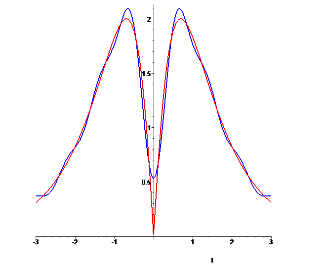 f := 2*sin(Pi-Pi*exp(-abs(t))): # by abs the function expanded as even function