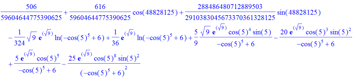 f:=x->(x^12-x*sin(x^11))/x^34+exp(sqrt(x+4))*ln(abs(cos(x)^5-6));