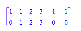 M:= < -1,2,3,1,1,-1 ; 0,2,3,1,0,0 >: