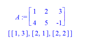A:=Matrix( [ [1,2,3],[4,5,-1]] );
