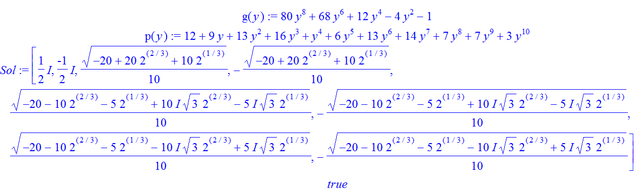 is(subs(y=Sol[3], p(y)*g(y))=0);
