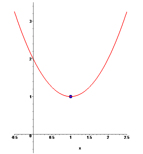 Line:=plot(x^2-2*x+2, x=-0.5..2.5, -0.5..3.5, thickness=2):