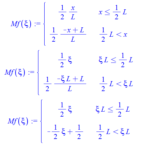 Mf(x):=piecewise(x<=L/2,1/2*x*F,x>1/2*L,1/2*x*F-F*(x-1/2*L)):