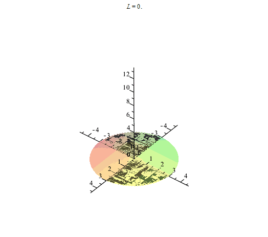 plots[animate](plot3d,[[r*cos(phi), r*sin(phi), L], phi = 0 .. 2*Pi, r = 0 .. 3, filled = true, axes = normal, style = surface, view = [-4.7 .. 4.7, -4.7 .. 4.7, -2.7 .. 13.7], lightmodel = light4, numpoints=10000], L=0..12, frames=50);
