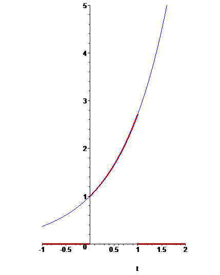 plot([exp(t),g(t)], t=-1..2, 0..5, color=[blue,red],thickness=[1,3],discont, scaling=constrained);