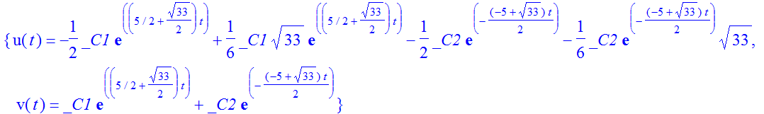 dsolve({diff(Y(t)[1],t)=(A.Y(t))[1],diff(Y(t)[2],t)=(A.Y(t))[2]} );