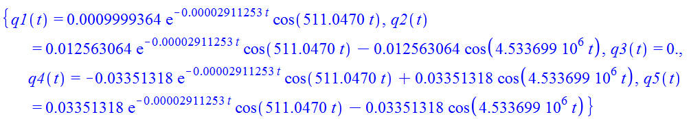 res := dsolve(`union`({EQ1, EQ2, EQ3, EQ4, EQ5}, {q1(0) = 0.1e-2, q2(0) = 0, q3(0) = 0, q4(0) = 0, q5(0) = 0, (D(q1))(0) = 0, (D(q2))(0) = 0, (D(q3))(0) = 0}), {seq((q || i)(t), i = 1 .. 5)}, method = laplace);