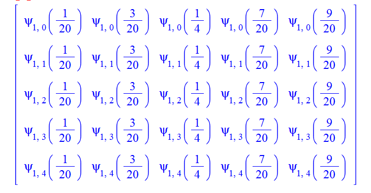 MMatrix([seq(psi[1, i], i = 0 .. 4)], 10, 5);