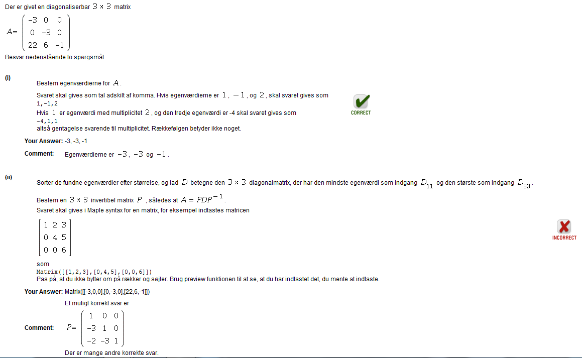 The answer must be in Maple syntax for a matrix, for example, enter the matrix