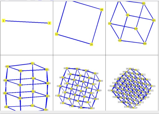 Here is a step by step two dimensional projection of the first 8 hypercubes lined up in such a way that it shows what happens as you compute approximations to the MRB constant. Whether the hypercubes are to scale or not it makes little difference because the series is so slow to converge that the first 8 terms give no decimal places of accuracy.The divergent series for the MRB constant is sum((-1)^n*(n^(1/n)),n=1..infinity) = -sum((-1)^(n+1)*(n^(1/n)),n=1..infinity) as shown here.