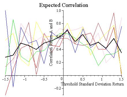 "Correlation of two returns when both returns are one standard deviation above their mean"