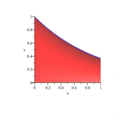 SurfaceOfRevolution(exp(-x),x=0..2,view=[0..1,0..1,0..1],'axis'='horizontal',orientation=[0,90,90],'distancefromaxis'=0,'output'='plot',labels=["x","","y"],transparency=0.5,title = "");