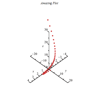Below is the test odeplot produced with acer's code, but exported with the pointy-clicky method. Sadly, the third label (z) is dropped when exporting using the programmatic plotsetup method outlined above (this is a problem I remember reporting a few releases ago, so it hasn't been fixed with Maple 16). The animated plot with the label exported with context-menu clicks: