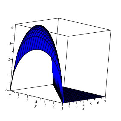 plot3d( Re( sqrt((x-1)*(y-x))+sqrt((7-y)*(1-x))+sqrt((x-y)*(y-7)) )