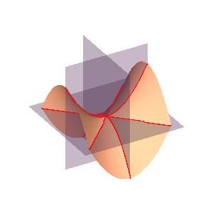 L1:= intersectplot(surface(x^2-y^2,x=-1..1,y=-1..1),surface(y=0,x=-1..1,y=-1..1,z=-1..1),