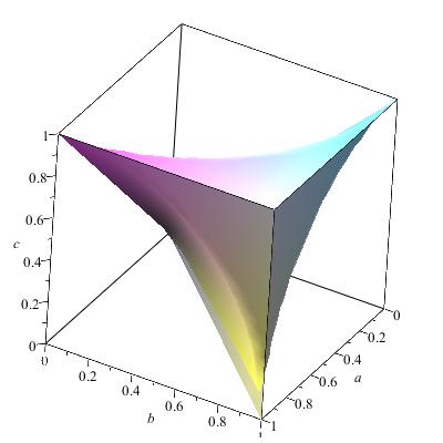 plot3d([min(sqrt(b^2+c^2),1),b,c],b=0..1,c=0..1)],