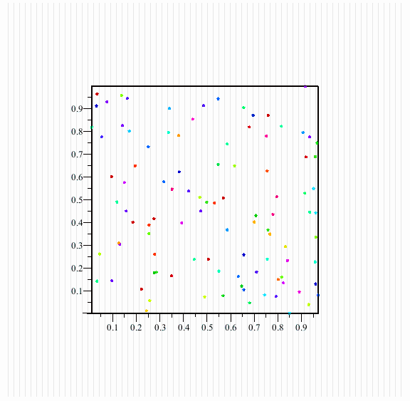 The 1D Array `colorarray` below has 3*N entries. For HSV coloring schemes this Array will be interpreted as a sequence of triples (ie. Hue, Saturation, and intensity Value). For RGB the triples will be interpreted as the Red, Green, and Blue values. The key is that the 3*N entries represent three entries for each of the N points, laid out in a contiguous sequence.