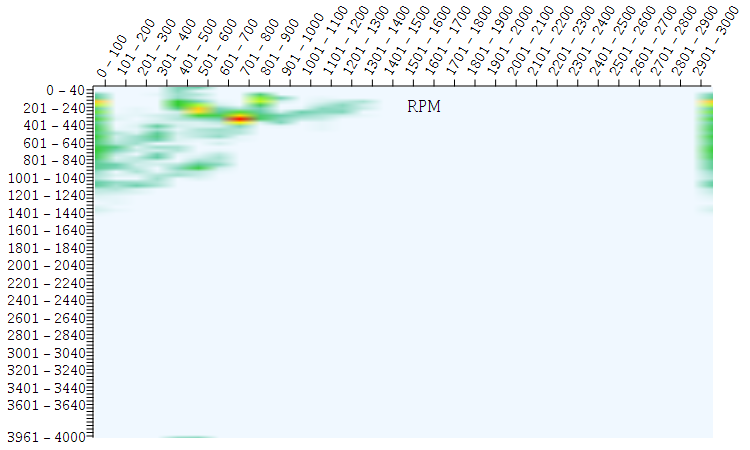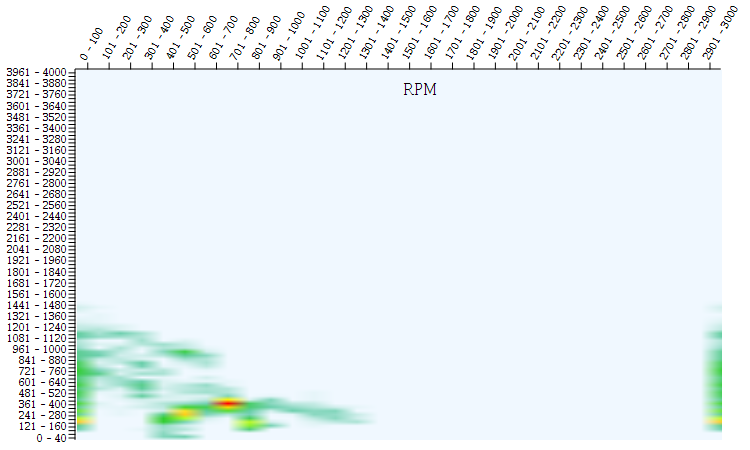 Array3 := Matrix(101, 31, {(1, 1) = 0., (1, 2) = "RPM 0 - 100", (1, 3) = "RPM 101 - 200", (1, 4) = "RPM 201 - 300", (1, 5) = "RPM 301 - 400", (1, 6) = "RPM 401 - 500", (1, 7) = "RPM 501 - 600", (1, 8) = "RPM 601 - 700", (1, 9) = "RPM 701 - 800", (1, 10) = "RPM 801 - 900", (1, 11) = "RPM 901 - 1000", (1, 12) = "RPM 1001 - 1100", (1, 13) = "RPM 1101 - 1200", (1, 14) = "RPM 1201 - 1300", (1, 15) = "RPM 1301 - 1400", (1, 16) = "RPM 1401 - 1500", (1, 17) = "RPM 1501 - 1600", (1, 18) = "RPM 1601 - 1700", (1, 19) = "RPM 1701 - 1800", (1, 20) = "RPM 1801 - 1900", (1, 21) = "RPM 1901 - 2000", (1, 22) = "RPM 2001 - 2100", (1, 23) = "RPM 2101 - 2200", (1, 24) = "RPM 2201 - 2300", (1, 25) = "RPM 2301 - 2400", (1, 26) = "RPM 2401 - 2500", (1, 27) = "RPM 2501 - 2600", (1, 28) = "RPM 2601 - 2700", (1, 29) = "RPM 2701 - 2800", (1, 30) = "RPM 2801 - 2900", (1, 31) = "RPM 2901 - 3000", (2, 1) = "0 - 40", (2, 2) = 0., (2, 3) = 0., (2, 4) = 0., (2, 5) = 0., (2, 6) = 11.0, (2, 7) = 13.0, (2, 8) = 0., (2, 9) = 0., (2, 10) = 0., (2, 11) = 0., (2, 12) = 0., (2, 13) = 0., (2, 14) = 0., (2, 15) = 0., (2, 16) = 0., (2, 17) = 0., (2, 18) = 0., (2, 19) = 0., (2, 20) = 0., (2, 21) = 0., (2, 22) = 0., (2, 23) = 0., (2, 24) = 0., (2, 25) = 0., (2, 26) = 0., (2, 27) = 0., (2, 28) = 0., (2, 29) = 0., (2, 30) = 0., (2, 31) = 0., (3, 1) = "41 - 80", (3, 2) = 0., (3, 3) = 0., (3, 4) = 0., (3, 5) = 0., (3, 6) = 10.0, (3, 7) = 1.0, (3, 8) = 0., (3, 9) = 0., (3, 10) = 0., (3, 11) = 0., (3, 12) = 0., (3, 13) = 0., (3, 14) = 0., (3, 15) = 0., (3, 16) = 0., (3, 17) = 0., (3, 18) = 0., (3, 19) = 0., (3, 20) = 0., (3, 21) = 0., (3, 22) = 0., (3, 23) = 0., (3, 24) = 0., (3, 25) = 0., (3, 26) = 0., (3, 27) = 0., (3, 28) = 0., (3, 29) = 0., (3, 30) = 0., (3, 31) = 0., (4, 1) = "81 - 120", (4, 2) = 13.0, (4, 3) = 0., (4, 4) = 0., (4, 5) = 1.0, (4, 6) = 8.0, (4, 7) = 6.0, (4, 8) = 0., (4, 9) = 0., (4, 10) = 19.0, (4, 11) = 0., (4, 12) = 0., (4, 13) = 0., (4, 14) = 0., (4, 15) = 0., (4, 16) = 0., (4, 17) = 0., (4, 18) = 0., (4, 19) = 0., (4, 20) = 0., (4, 21) = 0., (4, 22) = 0., (4, 23) = 0., (4, 24) = 0., (4, 25) = 0., (4, 26) = 0., (4, 27) = 0., (4, 28) = 0., (4, 29) = 0., (4, 30) = 0., (4, 31) = 0., (5, 1) = "121 - 160", (5, 2) = 17.0, (5, 3) = 0., (5, 4) = 0., (5, 5) = 0., (5, 6) = 9.0, (5, 7) = 3.0, (5, 8) = 0., (5, 9) = 0., (5, 10) = 37.0, (5, 11) = 12.0, (5, 12) = 0., (5, 13) = 1.0, (5, 14) = 0., (5, 15) = 0., (5, 16) = 0., (5, 17) = 0., (5, 18) = 0., (5, 19) = 0., (5, 20) = 0., (5, 21) = 0., (5, 22) = 0., (5, 23) = 0., (5, 24) = 0., (5, 25) = 0., (5, 26) = 0., (5, 27) = 0., (5, 28) = 0., (5, 29) = 0., (5, 30) = 0., (5, 31) = 0., (6, 1) = "161 - 200", (6, 2) = 58.0, (6, 3) = 0., (6, 4) = 0., (6, 5) = 0., (6, 6) = 27.0, (6, 7) = 12.0, (6, 8) = 1.0, (6, 9) = 0., (6, 10) = 43.0, (6, 11) = 3.0, (6, 12) = 0., (6, 13) = 2.0, (6, 14) = 5.0, (6, 15) = 7.0, (6, 16) = 0., (6, 17) = 0., (6, 18) = 0., (6, 19) = 0., (6, 20) = 0., (6, 21) = 0., (6, 22) = 0., (6, 23) = 0., (6, 24) = 0., (6, 25) = 0., (6, 26) = 0., (6, 27) = 0., (6, 28) = 0., (6, 29) = 0., (6, 30) = 0., (6, 31) = 0., (7, 1) = "201 - 240", (7, 2) = 43.0, (7, 3) = 0., (7, 4) = 0., (7, 5) = 0., (7, 6) = 27.0, (7, 7) = 41.0, (7, 8) = 3.0, (7, 9) = 0., (7, 10) = 22.0, (7, 11) = 0., (7, 12) = 0., (7, 13) = 5.0, (7, 14) = 10.0, (7, 15) = 3.0, (7, 16) = 0., (7, 17) = 0., (7, 18) = 0., (7, 19) = 0., (7, 20) = 0., (7, 21) = 0., (7, 22) = 0., (7, 23) = 0., (7, 24) = 0., (7, 25) = 0., (7, 26) = 0., (7, 27) = 0., (7, 28) = 0., (7, 29) = 0., (7, 30) = 0., (7, 31) = 0., (8, 1) = "241 - 280", (8, 2) = 17.0, (8, 3) = 0., (8, 4) = 1.0, (8, 5) = 0., (8, 6) = 18.0, (8, 7) = 57.0, (8, 8) = 11.0, (8, 9) = 6.0, (8, 10) = 12.0, (8, 11) = 0., (8, 12) = 1.0, (8, 13) = 10.0, (8, 14) = 9.0, (8, 15) = 4.0, (8, 16) = 0., (8, 17) = 0., (8, 18) = 0., (8, 19) = 0., (8, 20) = 0., (8, 21) = 0., (8, 22) = 0., (8, 23) = 0., (8, 24) = 0., (8, 25) = 0., (8, 26) = 0., (8, 27) = 0., (8, 28) = 0., (8, 29) = 0., (8, 30) = 0., (8, 31) = 0., (9, 1) = "281 - 320", (9, 2) = 33.0, (9, 3) = 0., (9, 4) = 1.0, (9, 5) = 0., (9, 6) = 3.0, (9, 7) = 77.0, (9, 8) = 15.0, (9, 9) = 31.0, (9, 10) = 14.0, (9, 11) = 3.0, (9, 12) = 13.0, (9, 13) = 10.0, (9, 14) = 11.0, (9, 15) = 0., (9, 16) = 0., (9, 17) = 0., (9, 18) = 0., (9, 19) = 0., (9, 20) = 0., (9, 21) = 0., (9, 22) = 0., (9, 23) = 0., (9, 24) = 0., (9, 25) = 0., (9, 26) = 0., (9, 27) = 0., (9, 28) = 0., (9, 29) = 0., (9, 30) = 0., (9, 31) = 0., (10, 1) = "321 - 360", (10, 2) = 16.0, (10, 3) = 1.0, (10, 4) = 1.0, (10, 5) = 3.0, (10, 6) = 5.0, (10, 7) = 29.0, (10, 8) = 23.0, (10, 9) = 87.0, (10, 10) = 20.0, (10, 11) = 13.0, (10, 12) = 9.0, (10, 13) = 6.0, (10, 14) = 3.0, (10, 15) = 1.0, (10, 16) = 0., (10, 17) = 0., (10, 18) = 0., (10, 19) = 0., (10, 20) = 0., (10, 21) = 0., (10, 22) = 0., (10, 23) = 0., (10, 24) = 0., (10, 25) = 0., (10, 26) = 0., (10, 27) = 0., (10, 28) = 0., (10, 29) = 0., (10, 30) = 0., (10, 31) = 0., (11, 1) = "361 - 400", (11, 2) = 29.0, (11, 3) = 2.0, (11, 4) = 0., (11, 5) = 2.0, (11, 6) = 6.0, (11, 7) = 9.0, (11, 8) = 12.0, (11, 9) = 122.0, (11, 10) = 21.0, (11, 11) = 10.0, (11, 12) = 5.0, (11, 13) = 4.0, (11, 14) = 0., (11, 15) = 0., (11, 16) = 0., (11, 17) = 0., (11, 18) = 0., (11, 19) = 0., (11, 20) = 0., (11, 21) = 0., (11, 22) = 0., (11, 23) = 0., (11, 24) = 0., (11, 25) = 0., (11, 26) = 0., (11, 27) = 0., (11, 28) = 0., (11, 29) = 0., (11, 30) = 0., (11, 31) = 0., (12, 1) = "401 - 440", (12, 2) = 16.0, (12, 3) = 0., (12, 4) = 1.0, (12, 5) = 3.0, (12, 6) = 2.0, (12, 7) = 2.0, (12, 8) = 5.0, (12, 9) = 83.0, (12, 10) = 2.0, (12, 11) = 11.0, (12, 12) = 0., (12, 13) = 1.0, (12, 14) = 0., (12, 15) = 0., (12, 16) = 0., (12, 17) = 0., (12, 18) = 0., (12, 19) = 0., (12, 20) = 0., (12, 21) = 0., (12, 22) = 0., (12, 23) = 0., (12, 24) = 0., (12, 25) = 0., (12, 26) = 0., (12, 27) = 0., (12, 28) = 0., (12, 29) = 0., (12, 30) = 0., (12, 31) = 0., (13, 1) = "441 - 480", (13, 2) = 22.0, (13, 3) = 0., (13, 4) = 2.0, (13, 5) = 15.0, (13, 6) = 3.0, (13, 7) = 2.0, (13, 8) =