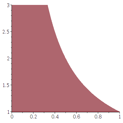 plottools:-transform((x,y)->[x,y+min(3,1/x)])(plot(1-min(3,1/x),x=0..1,filled));