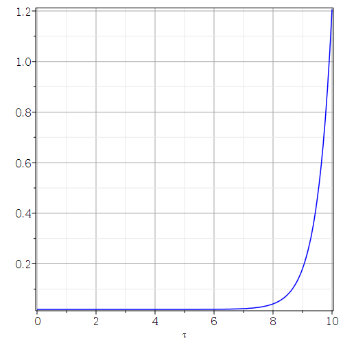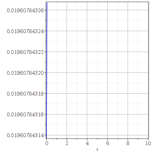 plots:-odeplot(sol1,[tau,GAM(tau)/51],tau=0..10,axes=boxed,gridlines,color=[blue,red]);