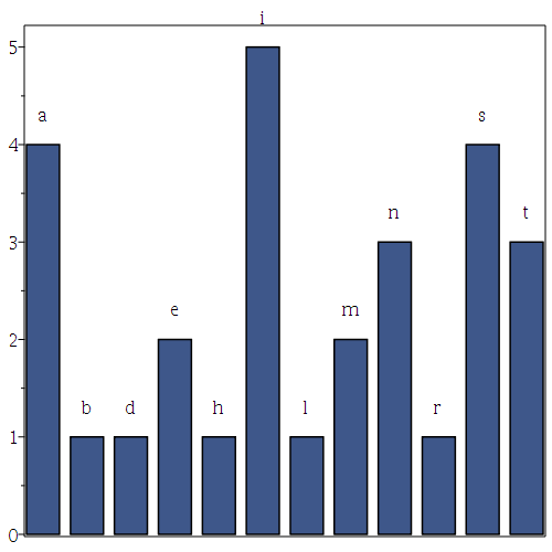 T := [StringTools[CharacterFrequencies]("antidisestablishmentarianism")]: