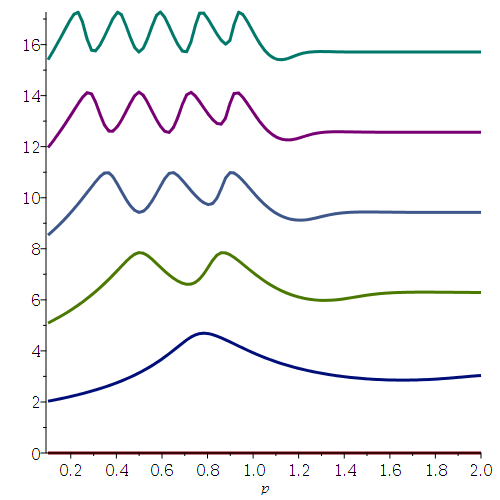 plot([seq(U(p)[i],i=1..6)],p=0.1..2.0,adaptive=false,numpoints=101,thickness=3);